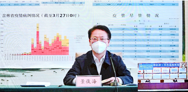 3月27日,省委书记景俊海主持召开视频调度会,进一步安排部署长春疫情防控工作。