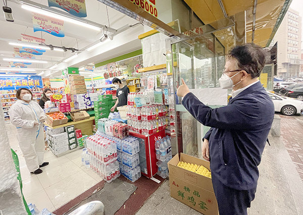 景俊海随机抽查新天地超市西朝阳路二店、吉林大药房同志街连锁店,实地了解线上订购、线下配送等情况,叮嘱工作人员严格遵守防疫规定,每日进行核酸检测,及时把药品物资送到小区,切实满足群众基本生活和正常用药需求。
