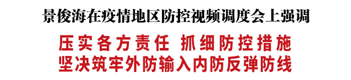 景俊海指出,当前,我省外防输入、内防反弹压力依然较大,各级党委、政府要树牢底线思维、极限思维、系统思维,继续坚持快准严细实,以“时时放心不下”的责任感,从严从紧推进各项防控工作,尽快控制住局部疫情,坚决巩固住来之不易的疫情防控成果。一要拉紧责任链条,省疫情防控领导小组要抓好统筹协调,解决重大问题;各专项工作组要做好专业指导、物资保障等工作;各涉疫市(州)、县(市、区)要切实扛起属地责任,建立健全联防联控和信息共享机制,坚决做到守土有责、守土尽责、守土负责。二要筑牢防控屏障,坚持人、物、环境同防,强化人防、物防、技防措施。三要强化应急处置,紧盯“控源”和“阻断”两个关键点,严格落实“四早”和“四应四尽”措施,织密织牢疫情监测网,有疫情县(市、区)要坚持每日全员检测,没有疫情的县(市、区)要坚持三天一检,对集中隔离场所工作人员、定点医院和发热门诊医务人员、快递物流人员等重点风险人群要落实日检测制度;严格落实“三公(工)”协同联动机制,发挥防疫“扑火队”作用,快流调、快筛查、快追阳,迅速摸清传染源头、活动轨迹和传播链条,尽快阻断疫情扩散蔓延。四要坚持有备无患,加强疾控机构、定点医院、基层医疗卫生机构、集中隔离点等建设,抓好抗原试剂、核酸检测试剂、防护服、口罩酒精、中医药等防疫物资采购储备,加大生活物资调运、联保联供、就医保障工作力度,加强人员组织和培训,预备好医疗救治、应急处突、治安管理等人员力量,确保万无一失。要进一步做好防疫科普工作,引导群众积极配合防疫、做好个人防护,着力夯实群防群控、同心抗疫的社区防线。