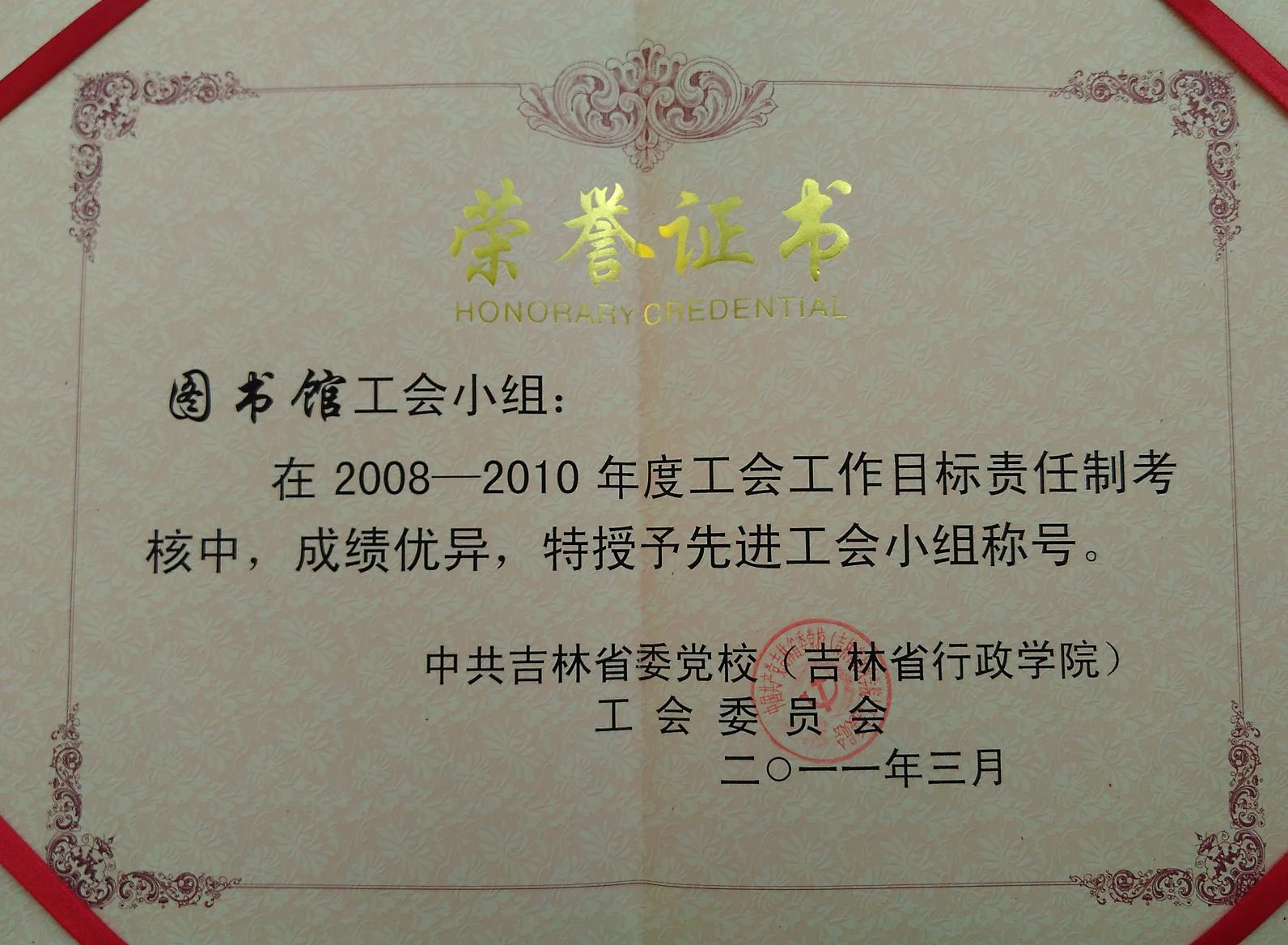 2008-2010图书馆工会小组被授予先进工会小组称号