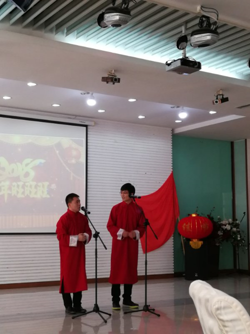 意气风发的主持人妙语连珠。“千里情缘春城聚,三生盼得党校缘。党校师生多才俊,藏龙卧虎待春风”。小合唱《红旗飘飘》。研二研三党支部研究生会成员接过接力棒,余音绕梁的歌声感动全场;《走进新时代》用歌声带领我们走进那新时代;朗诵《我的祖国》、《沁园春·雪》、《每个人都有一个中国梦》、《放飞中国梦》等,他们用慷慨激昂的语调,饱含深情地述说祖国的壮丽河山,及对中国梦必将实现的勇气与决心;除了学生的精彩的表演,老师也按捺不住,《站在草原望北京》老师集体舞,整齐划一的舞蹈动作配合琅琅上口的旋律赢得了阵阵掌声;当然,我们也有现代舞蹈在《Panama》青春活力的旋律中将联欢会推向高潮;《相声也要try一try》两位学生用丰富的语言、恰当好处的肢体动作、意想不到的相声包袱使得大家哄堂大笑;作为压轴性合唱《歌唱祖国》,由社工老师同学共同演绎,全场气氛顿时被点燃,全场观众挥动双手,为此次元旦联欢会画上圆满句号。